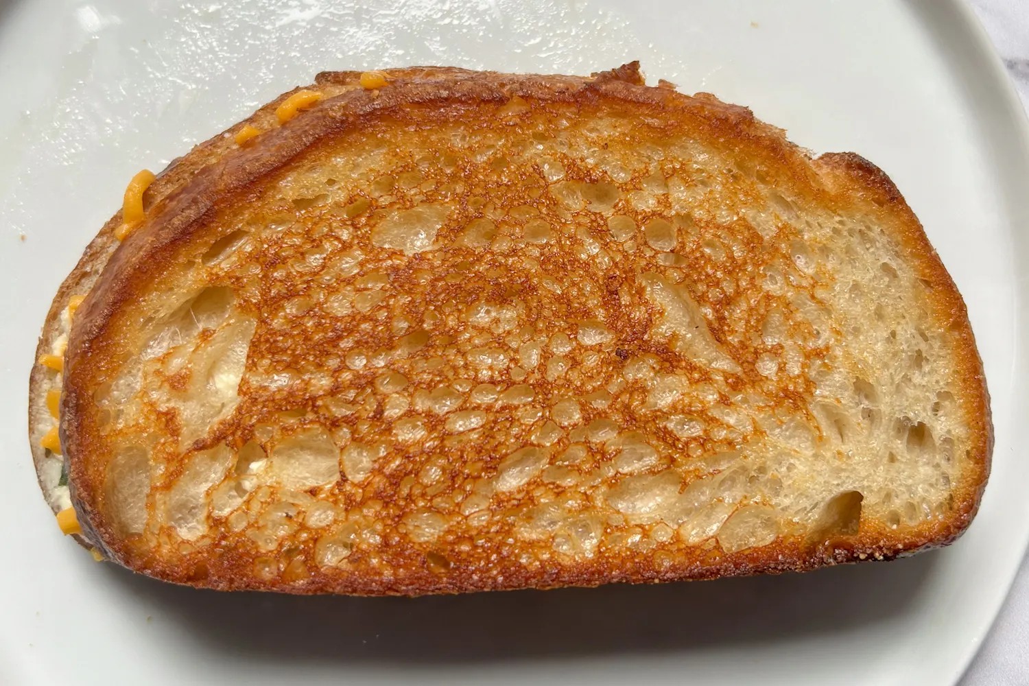 Процес простий: намажте тонкий шар Boursin на обидві половинки хліба перед додаванням улюбленого сиру. Для тих, хто хоче трохи ускладнити завдання, добре підійде суміш швейцарського, пармезану, гострого чеддера та білого чеддера. Але якщо у вас є лише тертий чеддер, цього буде цілком достатньо.