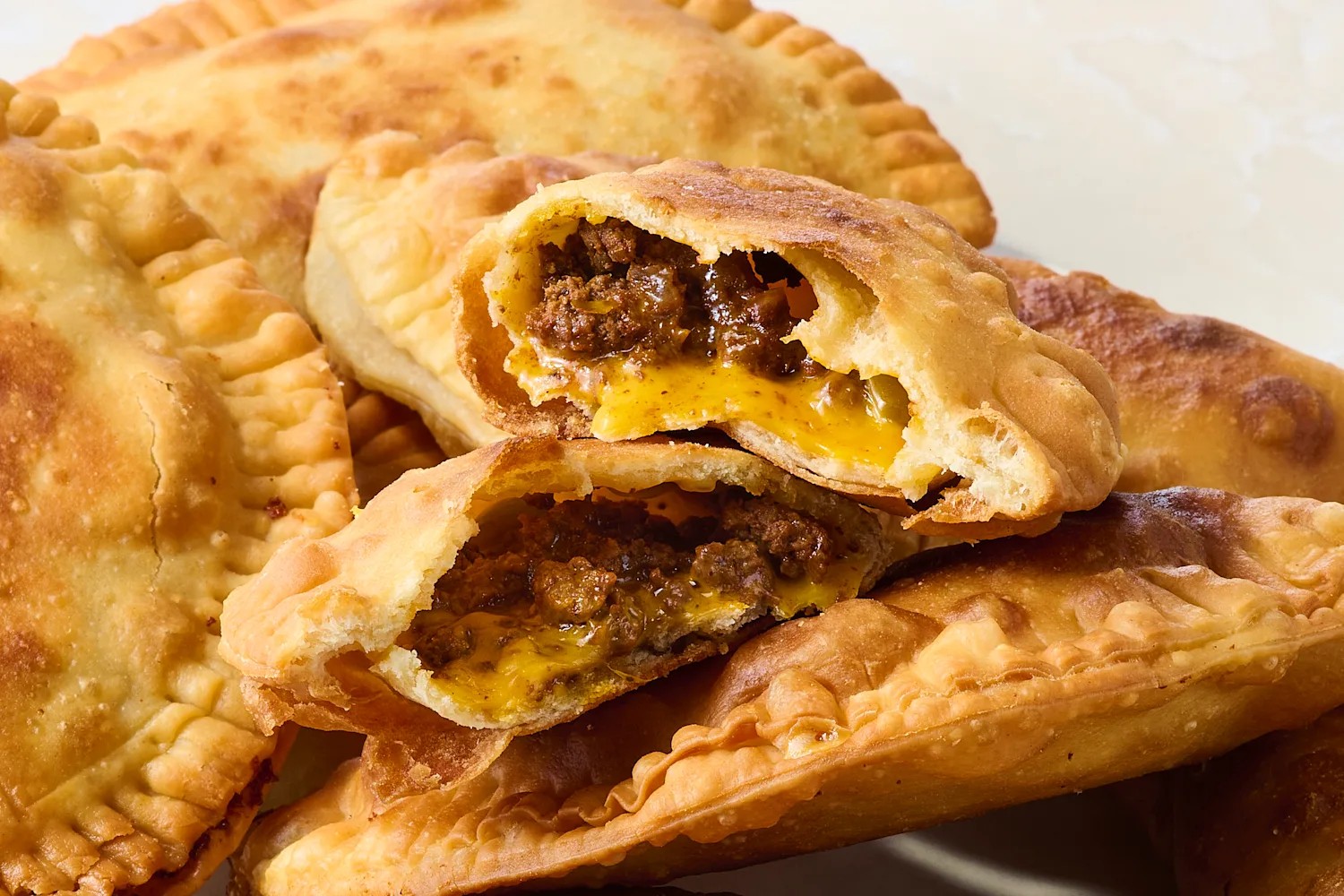 Магія криється у начинці. Софрито та сасон — це ароматні суміші спецій, які надають страві великої складності, не вимагаючи довгого списку інгредієнтів. Софрито, основа з обсмажених ароматичних трав, надає глибини, а сасон додає латиноамериканську фірмову гостроту. Використання нежирного м’ясного фаршу не дозволяє начинці ставати занадто жирною під час смаження.